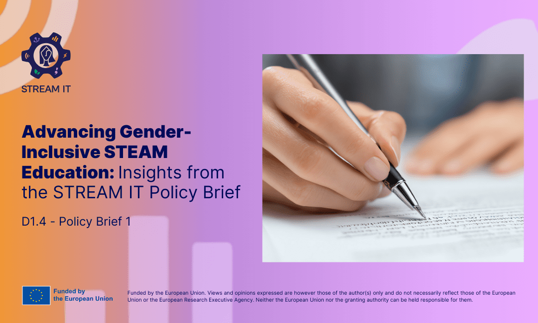 The recently published STREAM IT Policy Brief presents the first policy-relevant findings of the Horizon Europe-funded STREAM IT project, which addresses persistent gender inequalities in STEM education, research and innovation across Europe. Anchored in existing EU policy frameworks, the brief summarises the project’s research findings, outlines planned pilot interventions and formulates key policy recommendations aimed at increasing girls’ and women’s participation in STEM, while promoting gender- and diversity-inclusive STEAM approaches aligned with European strategies and priorities.